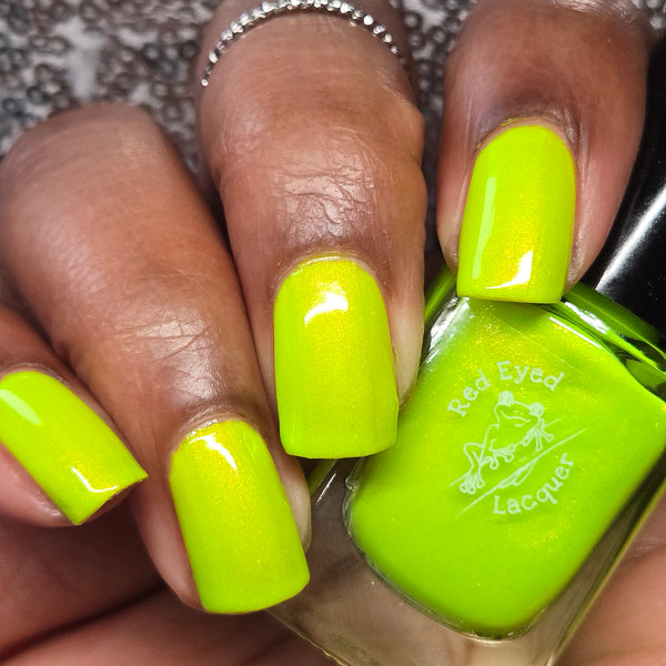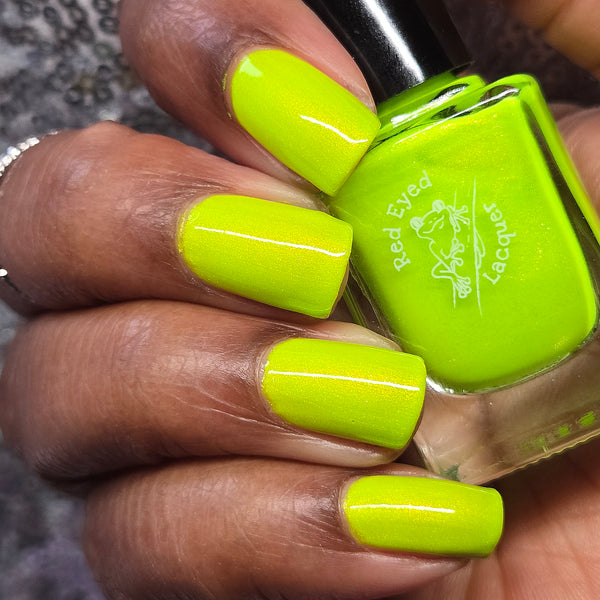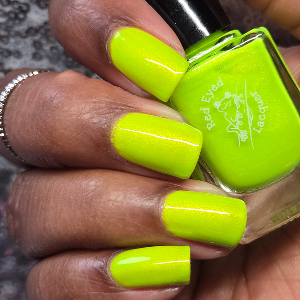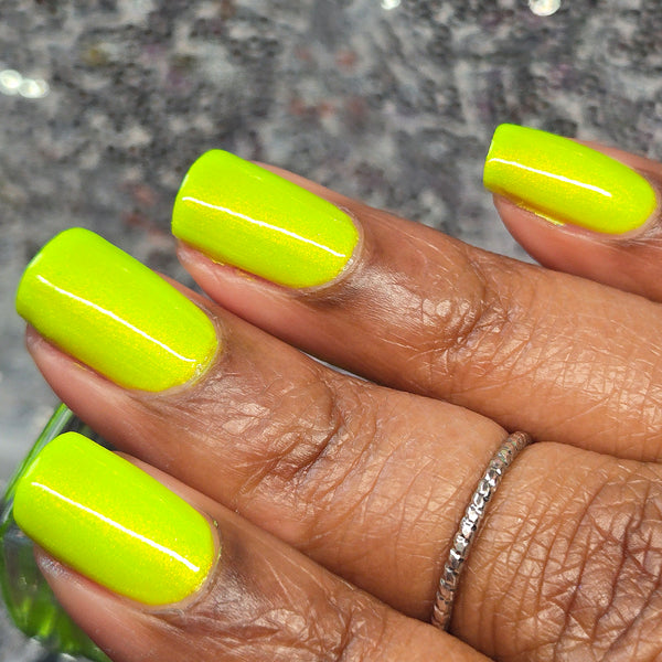A neon chartreuse crelly with gold/green shifting shimmer!